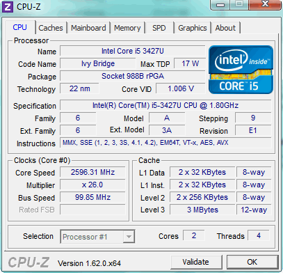 - پردازنده: Intel Core i5-3427U