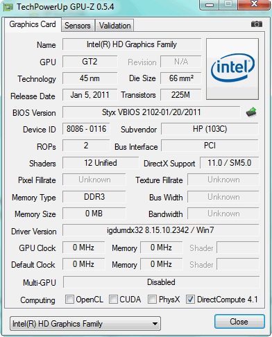 تراشه گرافیکی HD Graphics 3000 با پردازنده، یکپارچه شده و مسئول نمایش تمامی گرافیک هاست. دو شکاف حافظه اصلی RAM در لپ تاپ وجود دارد که یکی با یک ماژول 2048 مگاباتی اشغال می شود، در زمانی که که دیگری خالی باقی می ماند. BIOS نوت بوک مرکز کنترل است که کاربر می تواند انواع ویژگی ها و عملکردها مانند وب کم، کارت LAN، Multi CPU on/off, Hyper Threading on/off یا عملکردهای خاص (USB Charge off, when % capacity) پیکربندی کند. تعداد بسیار کمی از تولیدکنندگان به کاربران، چنین کنترل وسیعی بر روی دستگاه خود می دهند.
