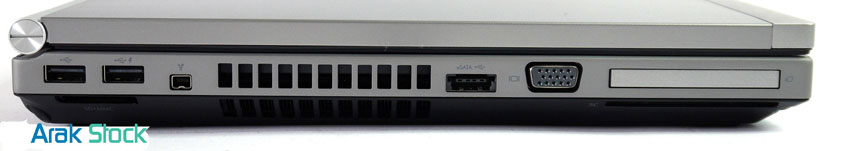 سمت چپ دستگاه: 2x USB 2.0, Firewire 400, USB/eSata, VGA, ExpressCard/54, Smart Card Reader