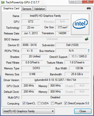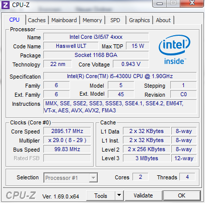 دل از یک پردازنده اینتلی (Core i5-4300U(1.9 GHz بر روی لپ تاپ های خود استفاده میکند، که تا کنون، یک مدل مشابه و بسیار نزدیک به i5-4200U (1.6GHz) بوده است. پردازنده می تواند با حداکثر 2.9 گیگاهرتز از طریق Turbo کار کند. که یک عضو از نسل Haswell است و یک TDP پانزده واتی دارد.