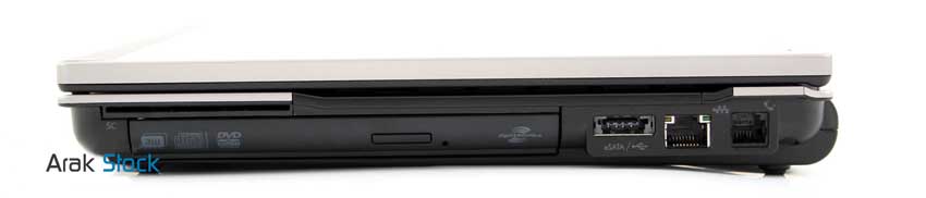 - سمت راست دستگاه: SmartCard, DVD drive, eSATA/USB combo, LAN, modem