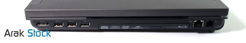 سمت راست دستگاه: USB / eSATA, two USB 3.0 ports, USB 2.0, Blu-Ray drive, LAN, modem