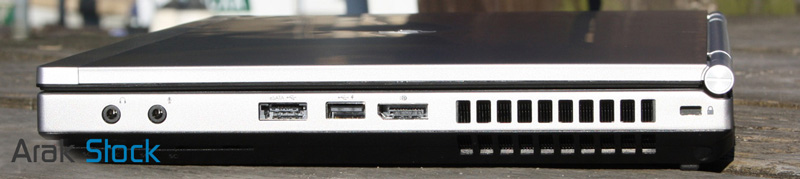 - سمت راست دستگاه: Headphones, Mic, eSATA/USB Combination, USB 2.0, DisplayPort, Kensington Lock