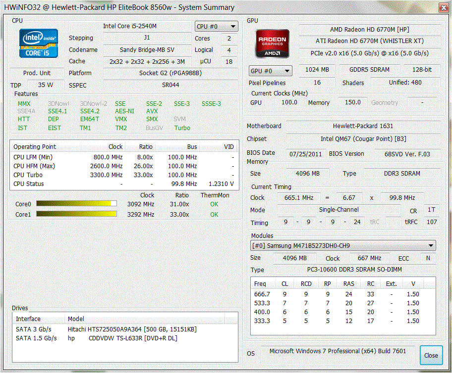 EliteBook 8560w با یکی از آخرین پردازنده های Sandy Bridge از اینتل مجهز شده است. در حالی که چند مدل با چهار هسته future-proof هستند، LG660EA بررسی شده، باید با یک پردازنده دو هسته ای باشد. با این وجود، نوت بوک کمبود قدرت ندارد: Core i5-2540M متعلق به قوی ترین مدل های قابل حمل است.