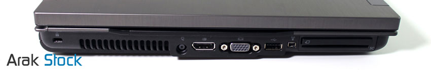 - سمت چپ دستگاه: Kensington lock, DC-in, display port, VGA, USB, Firewire, ExpressCard