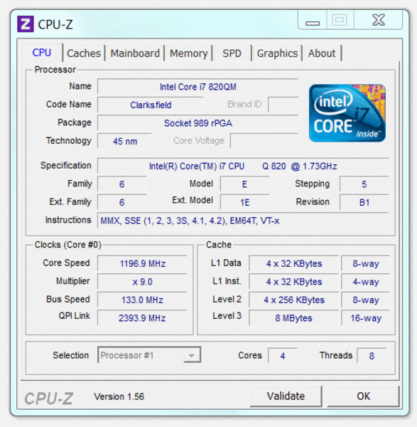 - پردازنده: Intel Core i7-820QM (Intel Core i7)