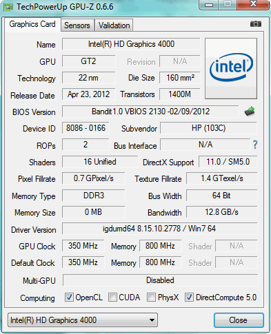 - پردازنده گرافیکی: Intel HD Graphics 4000, Core: 350-1150 MHz
