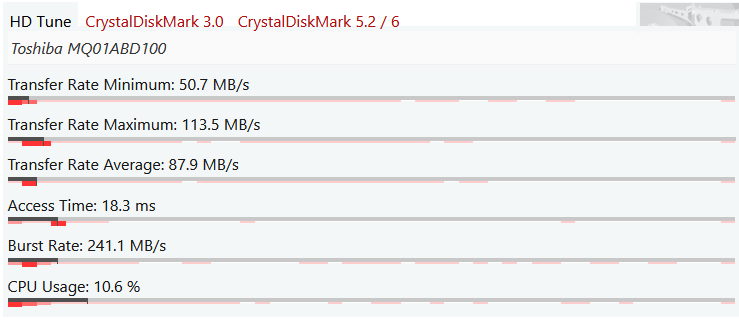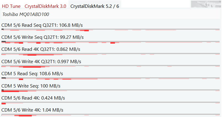 در 255 G6، HP از یک Toshiba-MQ01ABD100-HDD با 1 ترابایت حافظه استفاده شده. 5200 دور در دقیقه، این سرعت بسیار کندتر از دستگاه های قابل مقایسه با SSD است. در مقایسه با ایسوس X510UA با HDD، دستگاه آزمایشی ما همچنان نسبت به ایسوس X510UA برتری دارد و عملکرد در کارهای روزمره کافی است. زمان های انتظار گاه به گاه به دلیل بارگذاری برنامه ها باید پذیرفته شود، اما غیر قابل تحمل نیست.