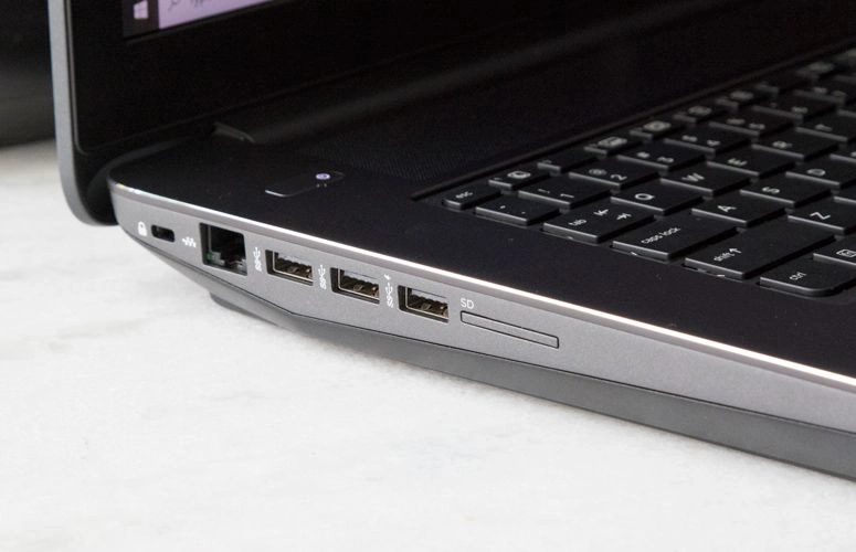 به لطف شاسی بزرگ ZBook، فضای زیادی برای پورت ها در دو طرف لپ تاپ وجود دارد. در سمت چپ، یک درگاه اترنت گیگابیتی، سه درگاه USB 3.0 (یکی با برق برای شارژ دستگاه ها)، یک کارت خوان SD و یک اسلات قفل امنیتی را خواهید دید.